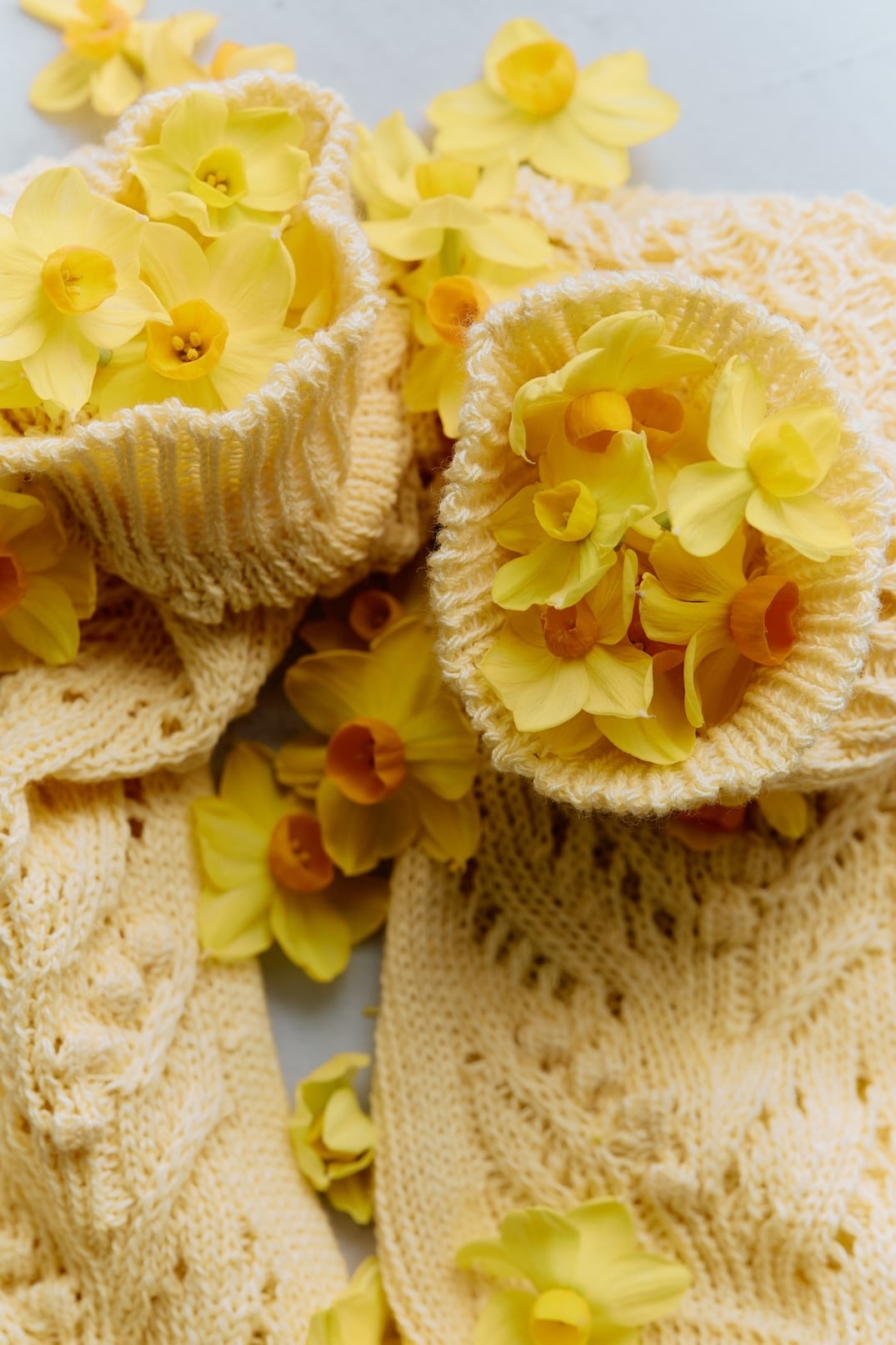 1足編むのに30分。ゆっくりゆっくり丁寧に編まれた鈴蘭柄のくつ下は、