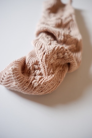 1足編むのに30分。ゆっくりゆっくり丁寧に編まれた鈴蘭柄のくつ下は、